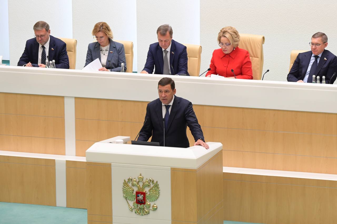 Об этом заявил губернатор Евгений Куйвашев 23 октября в ходе своего выступления на пленарном заседании Совета Федерации. Заседание прошло под руководством председателя Совета Федерации Валентины Матвиенко.