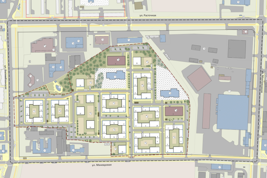 Фото: документация проектаРанее ИА «Уральский меридиан» писало, что данный земельный участок уже перевели из зоны ПК-1 (зона производственно-коммунальных объектов) в Ж-5 (зона многоэтажной жилой застройки). Территорию будет осваивать компания «Брусника», которая выкупила данный участок в прошлом году .