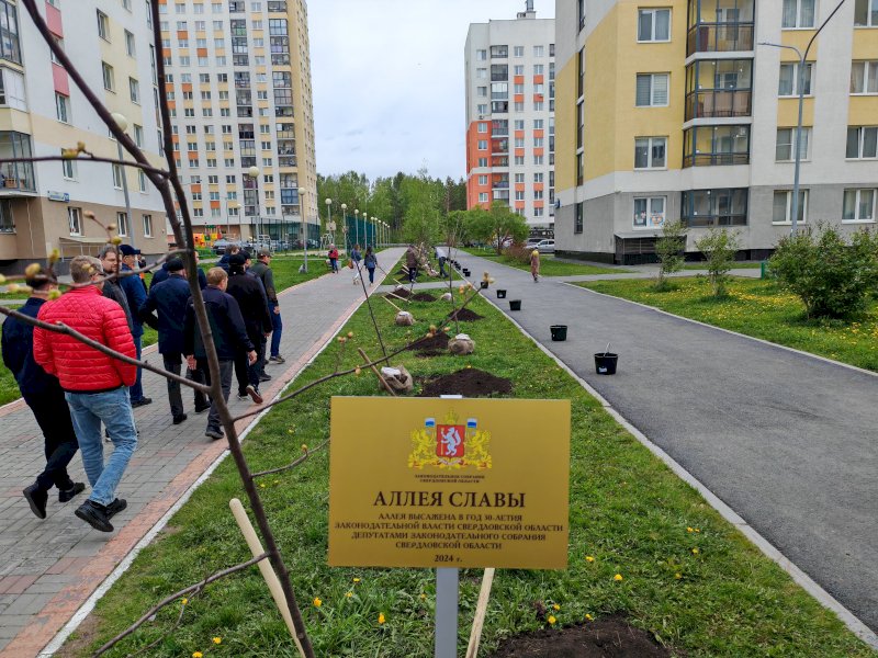 Депутаты законодательного собрания Свердловской области в компании юных екатеринбуржцев разбили Аллею славы , посвященную 30-летию законодательной власти региона. Тридцать лип (по одной за каждый год работы высшего органа государственной власти Среднего Урала) были посажены в самом новом районе Екатеринбурга — Академическом.