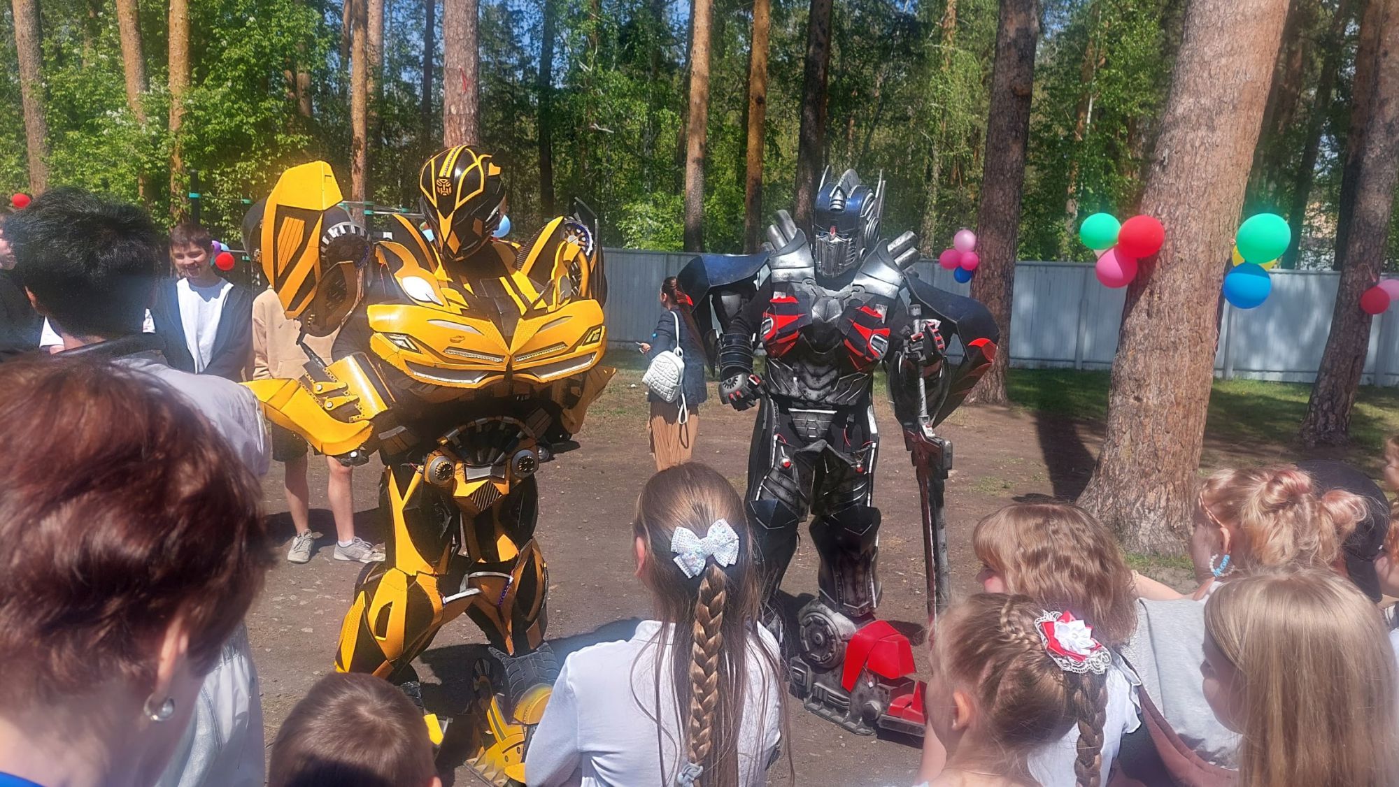 Музыкальную часть мероприятия сменило анимированное шоу с участием роботов-трансформеров. Дети отлично справились с задачей спасти планету от тёмных сил, и в конце их ждали персональные подарки. Также от руководства больницы и спонсоров детскому отделению передали эллипс-тренажёр, теннисный стол и ракетки, футбольные ворота, самокаты, волейбольные и футбольные мячи, настольные игры, воздушных змеев и другие атрибуты активного детства.